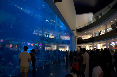 She was right. The mall was packed. And quite a sight. Picture every upscale and luxury brand in the United States and Europe, and put them in the same mall with air conditioning blasting to make you forget you are in the steaming desert. Add a bunch of men and women in traditional Muslim garb shopping for said luxury brands. Throw in all of the restaurant chains you can think of. Don’t forget a giant aquarium, the grandest music-and-light show possible, and an ice rink in the center of it all. And, naturally, the world’s current tallest building built specifically with extra tallness thrown on top just because they could.