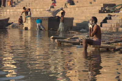 Varanasi is one of those places where you struggle over whether you should really be there, paying to observe real life, but in the end you participate like everyone else and try to make yourself feel better by saying, well at least I'm just observing, not intruding. We paid this man to row a boat down the Ganges at dawn like so many other tourists. The rowing is hard work and he was quick to let us know it, playing on our heartstrings with tales of his children in broken English to ensure a tip. Travel. It's complicated.